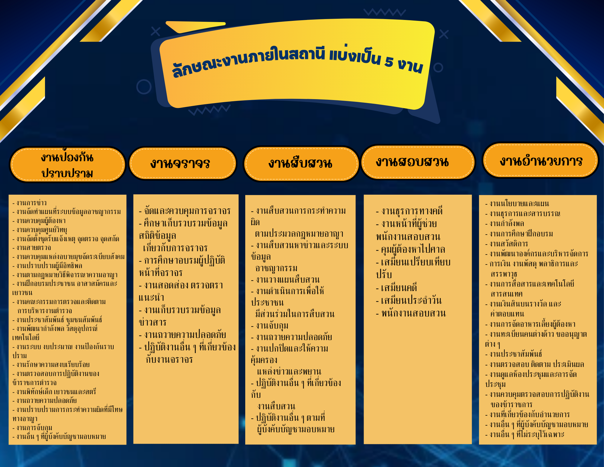 ๓. งานป้องกันและปราบปรามอาชญากรรม การรักษาความสงบเรียบร้อย การให้ความปลอดภัยแก่ประชาชน และการให้บริการช่วยเหลือประชาชนในรูปแบบต่างๆ