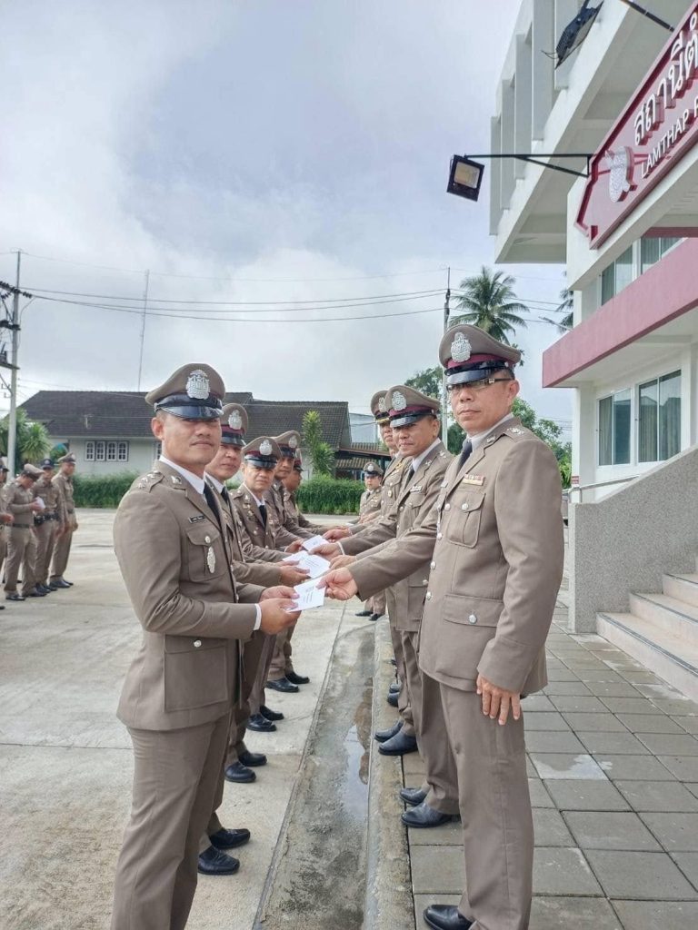 ผลการปฏิบัติงานอำนวยการ ประจำเดือน ต.ค.67 17 ตุลาคม 2567 โดย admin / งานอำนวยการ วันที่ 17 ตุลาคม 2567 เวลา 08.00 น. พ.ต.อ.จงรักษ์ พิมพ์ทอง ผกก.สภ.ลำทับ พร้อมด้วยข้าราชการตำรวจ สภ.ลำทับ ร่วมพิธีกล่าวคำสัตย์ปฏิญาณ อ่านสารของผู้บัญชาการตำรวจแห่งชาติ และมอบทุนการศึกษาแก่บุตรข้าราชการตำรวจ เนื่องในโอกาสวันสถาปนาสำนักงานตำรวจแห่งชาติ รายงานผลการปฏิบัติกิจกรรมจิตอาสาพัฒนา เนื่องในโอกาสวันปิยมหาราช ของ สภ.ลำทับ 1.วันที่ปฏิบัติกิจกรรม : 23 ต.ค.67 เวลา 13.30 น. 2.ประเภทงานจิตอาสา : จิตอาสาพัฒนา 3.หน่วยงานรับผิดชอบ : ศอ.จิตอาสาพระราชทาน อำเภอลำทับ จังหวัดกระบี่ ร่วมกับ เทศบาลตำบลลำทับ สภ.ลำทับ และกองพันทหารสื่อสารค่ยเทพกษัตรี อ.ทุ่งสง 4.สถานที่ทำกิจกรรม : คลองสินปุนหลังวัดลำทับ ม.5 ต.ลำทับ จว.กระบี่ 5.ผู้เข้าร่วมกิจกรรม -จิตอาสา 904 ผู้ปฏิบัติงาน : พ.ต.ท.ณภัทร หนูเสน รอง ผกก.ป.สภ.ลำทับ จว.กระบี่ รหัส 4-ก057 หลักสูตรพื้นฐาน ภาค 4 รุ่นที่ 1/65 – ส่วนราชการอำเภอลำทับ – เทศบาลตำบลลำทับ – ทหารจากกองพันทหารสื่อสารที่ 5 กองพลทหารราบที่ 5 – ประชาชนจิตอาสาและนักเรียน – ตำรวจจิตอาสา 6.รายละเอียดกิจกรรม : ร่วมอาสาพัฒนาบำเพ็ญ สาธารณประโยชน์ โดยการกำจัดผักตบชวา วัชพืชน้ำและพัฒนาริมตลิ่งคลองสินปุน 7.จำนวนผู้ร่วมกิจกรรม : 100 คน 8.ผลการปฏิบัติ : เป็นไปด้วยความเรียบร้อย FacebookFacebookXXLINELine
