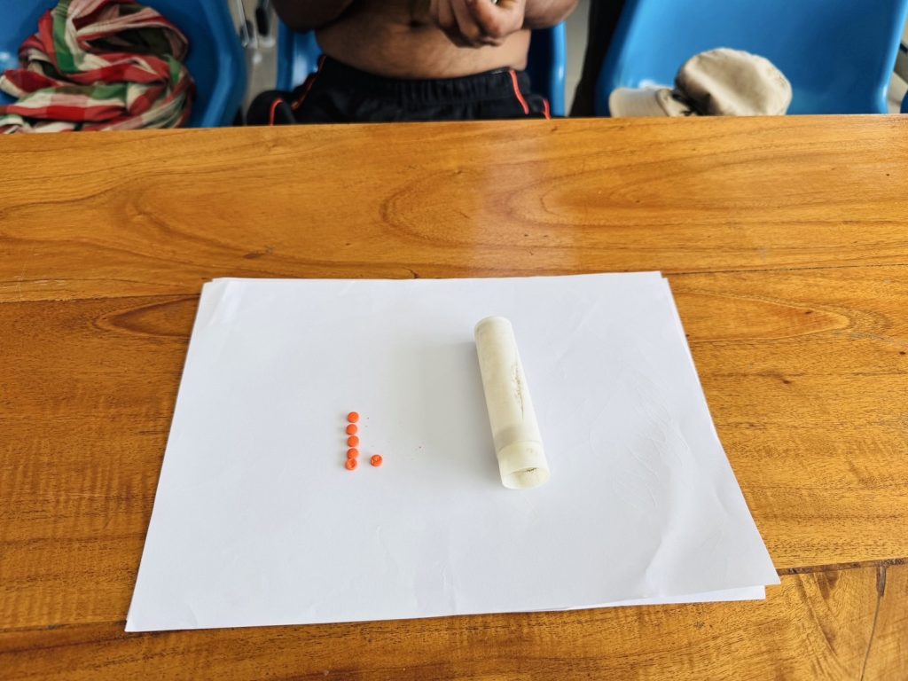 1.ยาบ้า (เมทแอมเฟตามีน) ชนิดเม็ดสีส้มกลมแบนด้านหนึ่งเรียบด้านหนึ่งพิมพ์ตัวอักษร WY เหมือนกันทุกเม็ด จำนวน 6 เม็ด